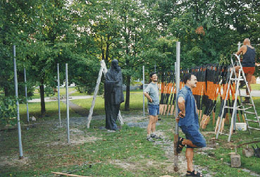 Installation wurde aus ca. 2.000 Schneestöcken aufgebaut, wie sie