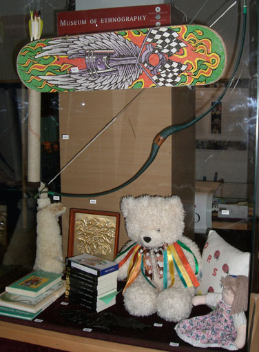 Für diese Ausstellung wurden selbst gemachte kleinere Geburtstagsgeschenke, Spielzeuge aus einer Weihnachtswunschliste, Objekte, die mit dem eigenem Taschengeld erworben worden sind und auch Gegenstände, die als Geschenke der Pflege von sozialen Beziehungen dienen, gesammelt.