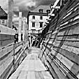 mit verschiedenen kunstprojekten. aufbauend auf dieser vorarbeit wurde der japanische künstler tadashi kawamata zum projekt eingeladen und hat seinen "sidewalk - wiener neustadt" entwickelt, einen rund um den häuserblock am hauptplatz verlaufenden, 350m langen und 4,5m hohen, ca.2 m breiten holzsteg. kleine plätze samt parkbänken luden zum verweilen, zum ausruhen, zum schauen, zum kommunizieren ein.
